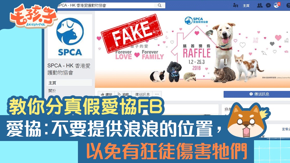 2月起Facebook出現了一個「SPCA - HK香港愛護動物協會」專頁,聲稱正推行「#TellUs」活動,讓市民發現流浪動物時,透過社交平台上的文章標籤來通知他們,好讓他們替有關動物安排絕育放回。這個假的愛協專頁名稱為「SPCA - HK」,而真身則是「SPCA (HK) 」,真身於FB註冊英文名「@spcahk」,假專頁則沒有。