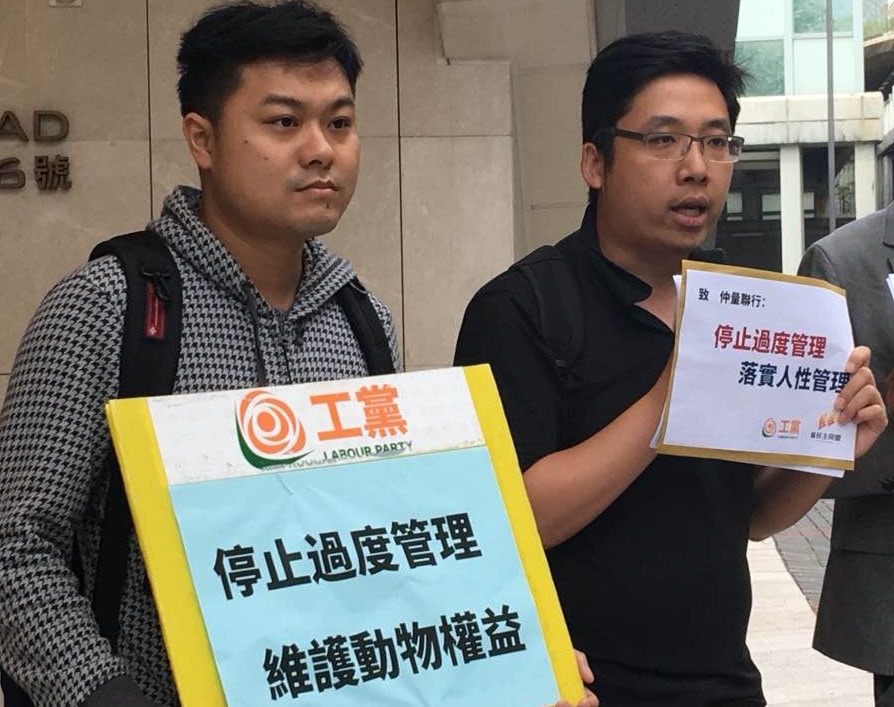 工黨及新民主同盟今日到涉事商廈嘉達環球中心對岀空地請願,希望大廈管理公司「仲量聯行」能夠關注過度管理問題、制定動物友善政策及人性化管理,請願期間未有喊叫口號,在管理公司派出代表接收請願信後,和平散去。