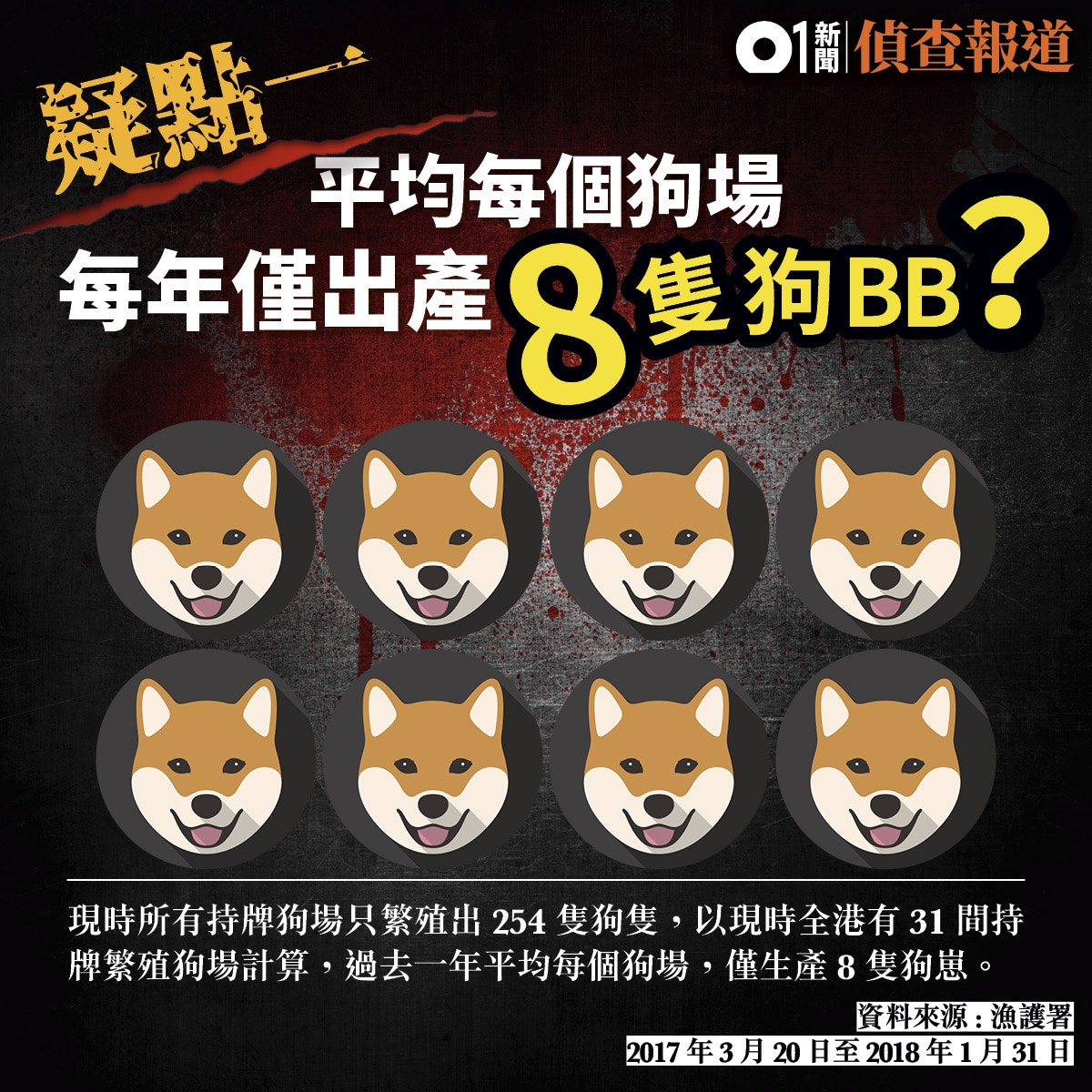 原文連結在此: https://www.hk01.com/01偵查/187988/雙非狗之二-本地狗場9成母狗去年無繁殖-官方數字現三大疑點