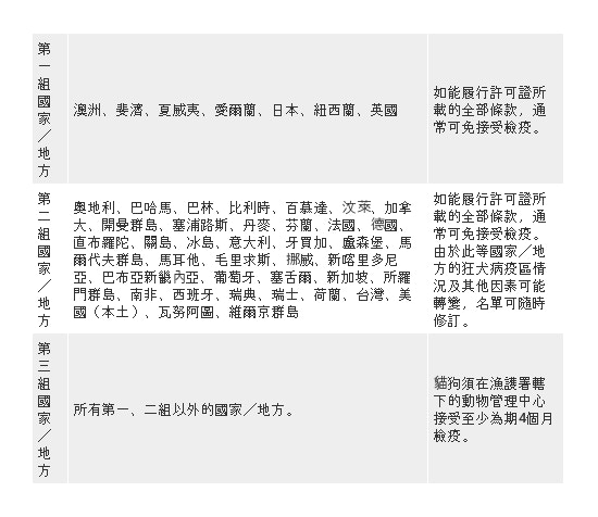 根據現行法例,動物售賣商若想進口狗隻,須持有漁護署發出的有效進口許可證/特別許可證,以及出口地獸醫機構發出的有效健康證明書。若要申請進口許可證,進口狗隻須經檢疫,而不同國家進口的狗隻檢疫要求不一。