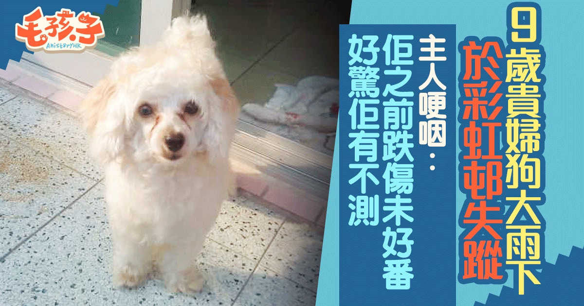 今早,一隻9歲貴婦狗疑於家中窗戶跳出後失蹤。主人「啊Bi」指牠早前曾跌傷,行動仍然不便;加上近日天氣惡劣,擔憂狗狗安危。