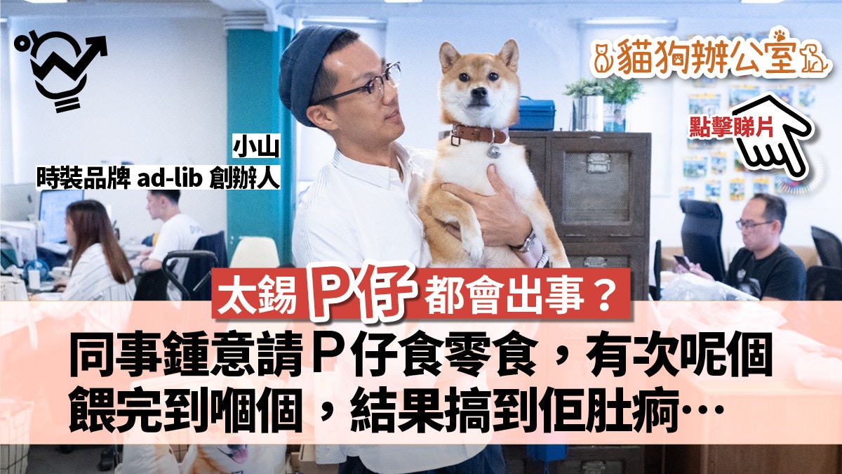 柴犬的笑臉,總帶有滿滿的治癒力,若可以在苦悶的工作環境中,被牠們時時刻刻療癒,工作應該會更有魄力,不會返工等食飯,食飯等放工吧!這樣的工作環境並不是夢,時裝店ad-lib的辦公室,可能是你理想的工作地點,因為他們的公關柴犬P仔正等着你呢!主人兼ad-lib老闆小山,每星期都會抽兩天帶P仔上班,為辦公室增添生氣的同時,促進同事溝通是他最大的目標,他笑說:「希望同事之間有工作以外的話題,促進溝通令關係更好,合作起來都會更有效率。」