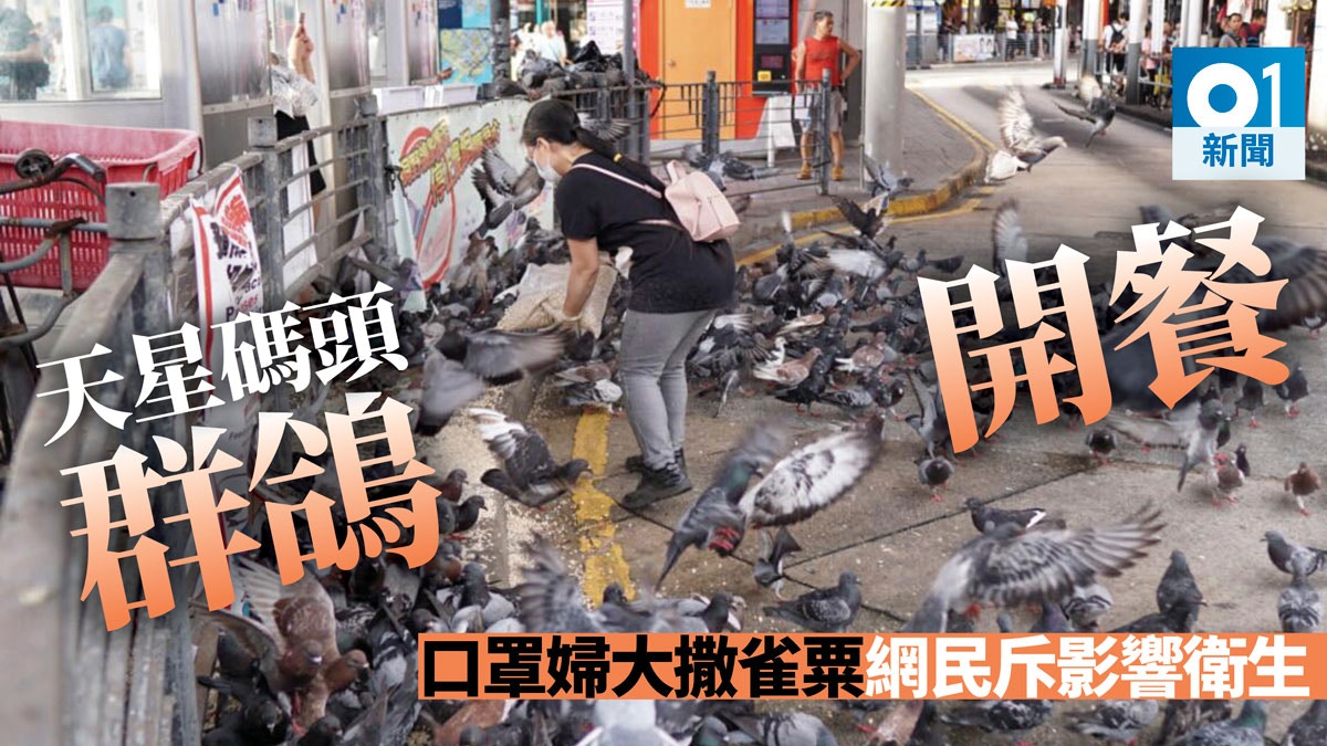 無視漁護署禁餵鴿標語,婦人在天星碼頭撒粟餵野鴿,出現群鴿佔領巴士道的景況。網上流傳數張拍攝於天星碼頭的照片,相中一名戴口罩的婦人,手持一袋懷疑是雀粟,在巴士總站最左邊巴士道上撒粟,數以百計的白鴿拍翼而至,圍作一團狂搶雀粟,而上址欄杆卻掛了漁護署呼籲勿餵飼野鴿的橫額。