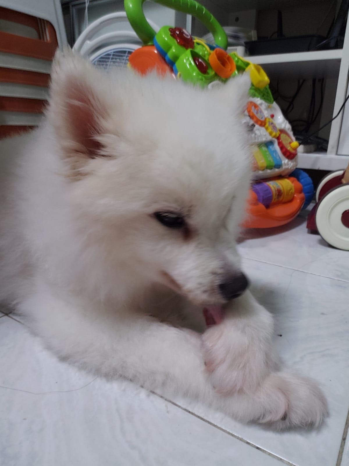 特徵:狗狗鼻頭有一點白點,前腳毛髮剛剃過