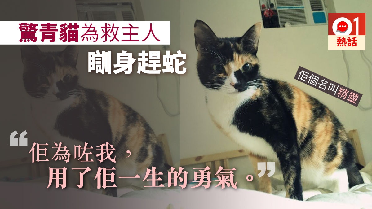 貓主Cecilia在facebook「天下貓貓一樣貓群組」發文,指自己跟兩隻愛貓「精靈」和「藍妹」住在村屋地下,昨(13日)因牠們及時提醒而避過蛇的偷襲,人無事,但精靈捉蛇時疑受重傷終不治。她表示寫下精靈的故事,是希望讓網民記得世界上曾經有隻貓咪,「救了我們一個家,救了我的生命!佢個名叫『精靈』!」