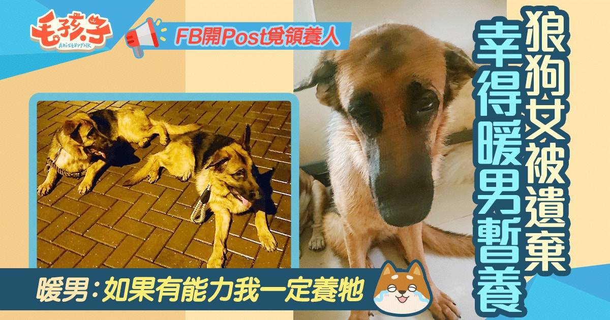 善心人Steve Chan最近在社交平台狗狗群組「香港業餘德國牧羊犬(狼狗)俱樂部」上發帖表示,由於自己沒有辦法再額外負擔多一隻由朋友家中得來的棄養狗狗,因此希望有善心人可以幫忙領養,給狗狗一個溫暖的家庭。