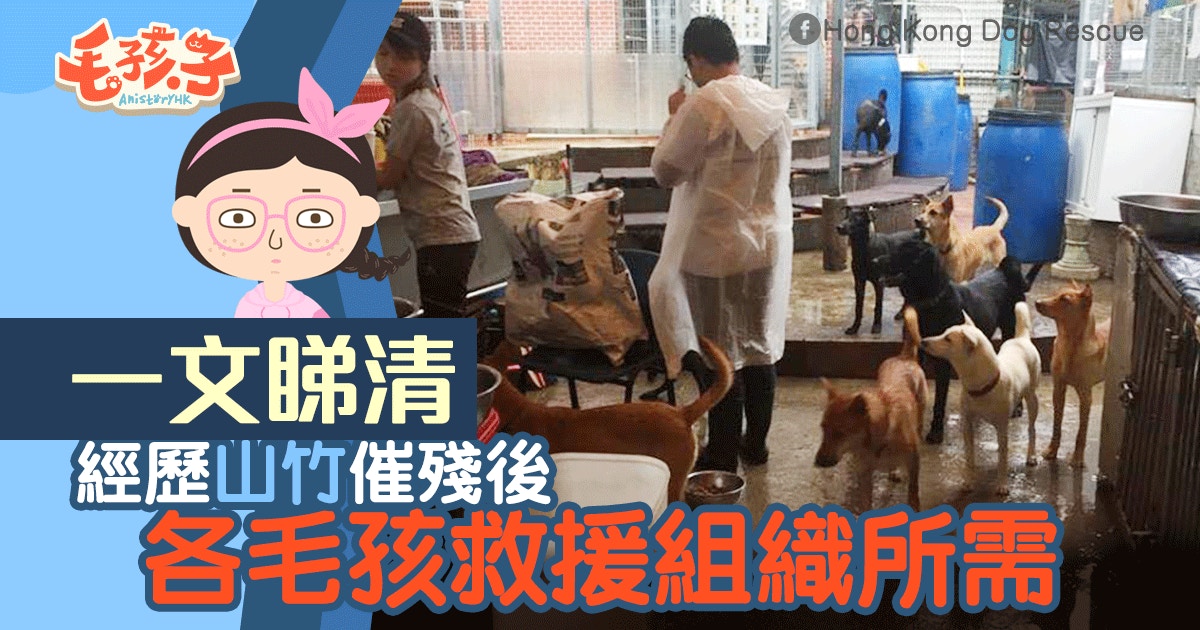 超強颱風「山竹」漸離香港,但它為本港帶來的破壞非同小可,不少毛孩救援機構在風暴過後十分狼狽,部分更面對物資短缺問題,需各熱心市民幫助,重建浪浪「家園」。