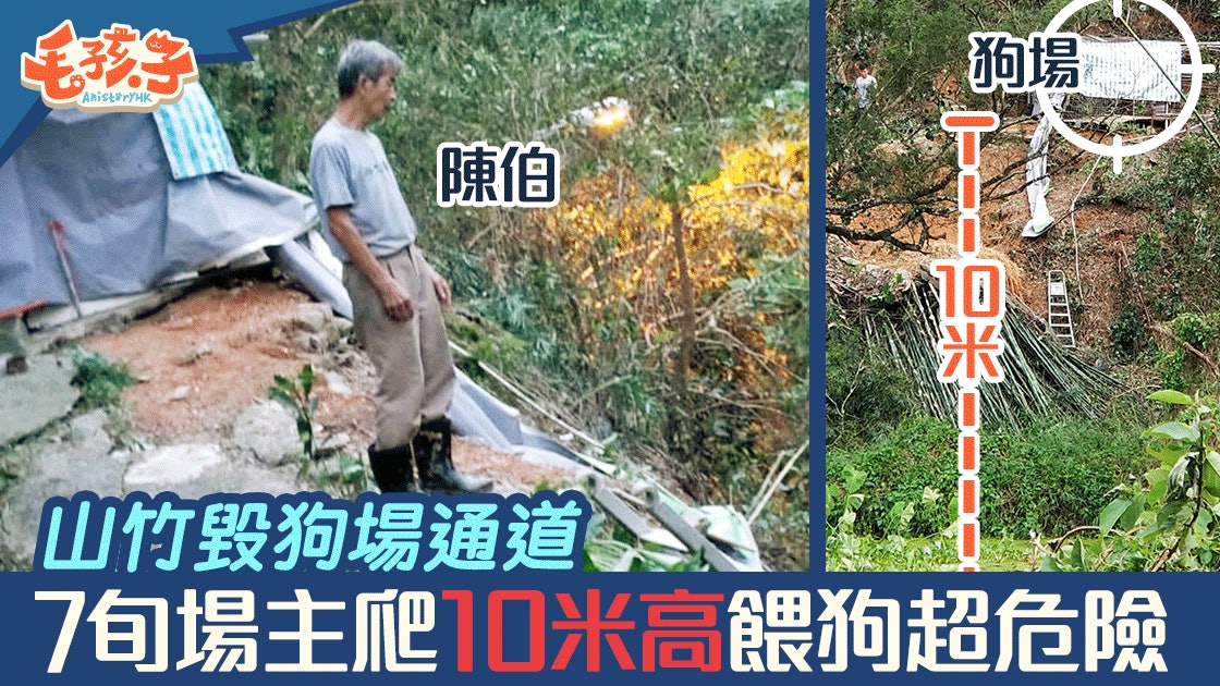 超強颱風「山竹」於兩周前襲港,導致本港不少樹木倒塌。正當大多市民的生活已重回正軌時,元朗崇山新村一個狗場的場主陳伯依然飽受「山竹」折磨。由於狗場位於山坡上,而通往狗場的唯一道路又被倒塌的竹子及山泥堵塞,年近70狗場場主陳伯只好每天冒險爬上兩條折疊梯,抵達狗場照顧狗狗,過程險象環生。