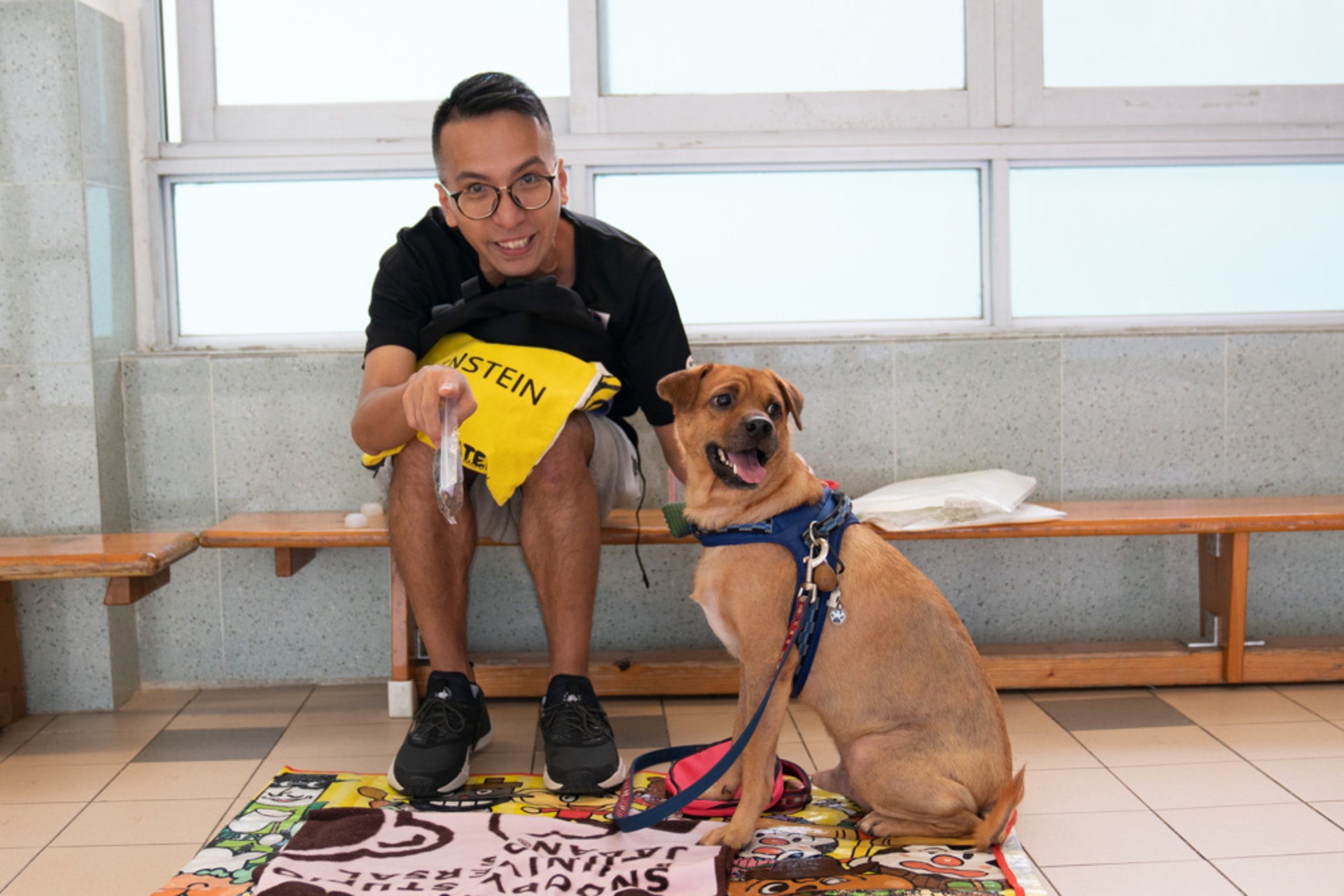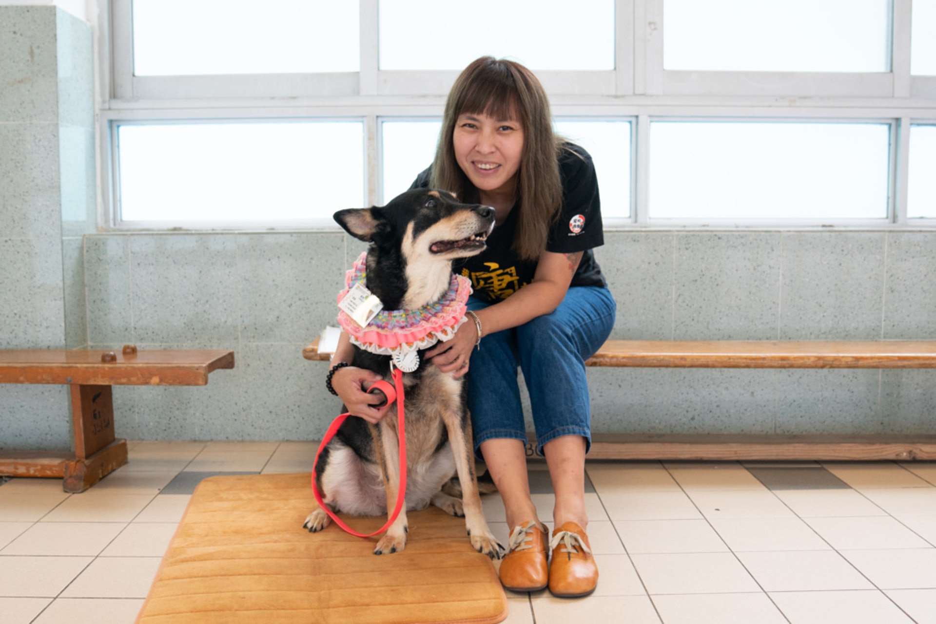 唐狗會創辦人顏綺苓帶治療犬「的士黃」探訪過隱青和獨居長者,希望能與狗狗一起貢獻社會。(吳鍾坤攝)