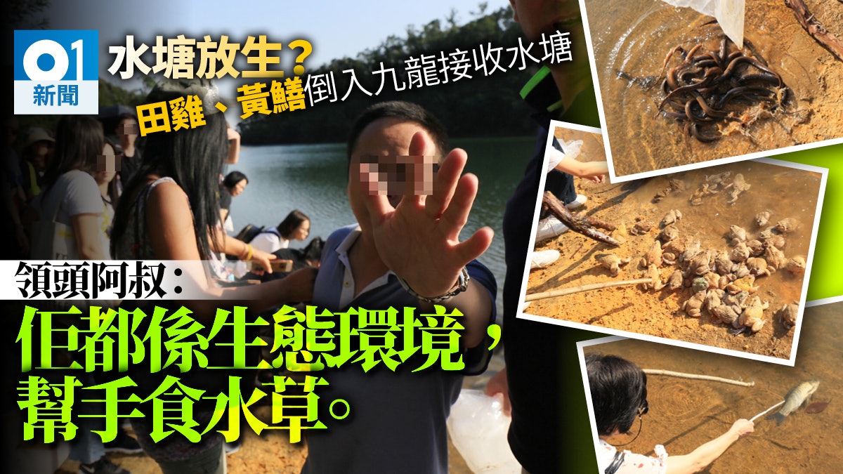 水塘放生田雞、黃鱔?星期日的下午,約30名善信帶了幾箱淡水魚、龜、水魚等物品,來到九龍接收水塘誦經放生。他們大部分人認為在水塘放生沒有問題,強調是在行善、有關生物是活在自然環境。但放生過後,記者目撃部分魚兒奄奄一息、田雞不適應環境,不敢妄動。也有年長善信說,他們確不知道在哪裡最適合放生。