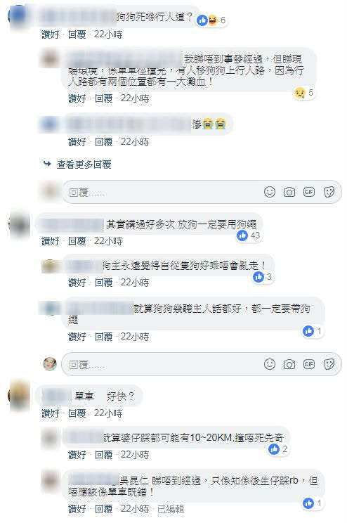 事發後有網民指狗主並未有妥善處理狗狗遺體,遺體後來被食環署撿走。(Facebook截圖)