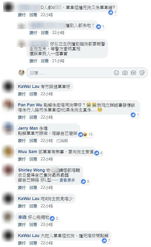不少網民得悉女主人未有妥善處理狗狗遺體後,都紛紛怒轟寵主行為冷血,「唔係咁賤格嘛!」、 「X街狗主, 以後都冇X養狗啦!」、 「跪求佢唔好再養任何小動物!」、「善終呢樣嘢,應該係狗主做嘅責任」、「點解可以對生命咁唔負責任的」、「孩子,一路走好」