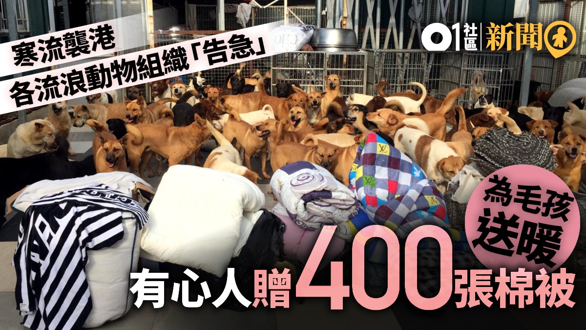 寒流即將襲港,不少人會為自己添置衣服,一眾流浪貓狗卻只能「赤裸裸」地承受寒風的吹襲。不少關注流浪動物的組織均呼籲市民捐贈毛氈、毛巾等物資,讓流浪貓狗可以渡過嚴冬,有有心人收到消息,馬上慷慨解囊,有人送400張棉被,更有機構送一貨車的毛氈,為小毛孩們雪中送暖。