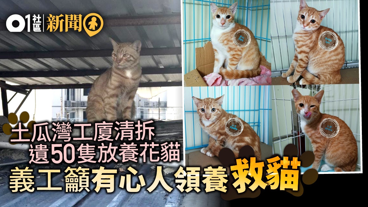 土瓜灣一棟工廈即將清拆重建,但工廈內仍約有50隻放養的花貓無法遷出。有貓義工自發成立關注組、「營救」花貓,為牠們安排絕育手術,及暫託在區內一間地鋪內。她們目前已成功救獲其中14隻貓,但地鋪租約在下月到期,有8隻貓仍未被領養或暫託,屆時或可能沒有空間安置,關注組呼籲有心人出手領養或暫託,「幫佢哋搵個屋企。」至於工廈內餘下約30隻貓,關注組呼籲其他機構一同救貓。