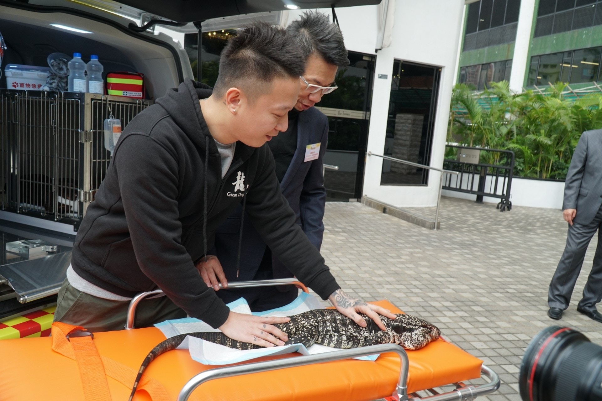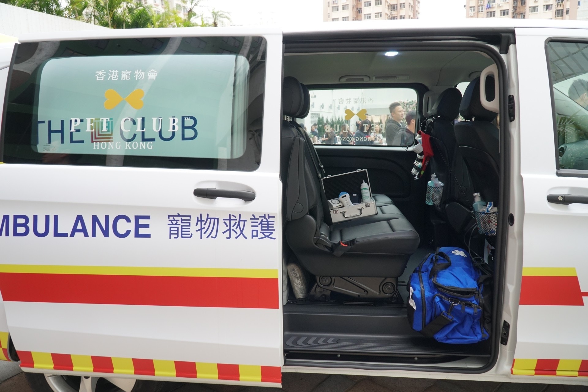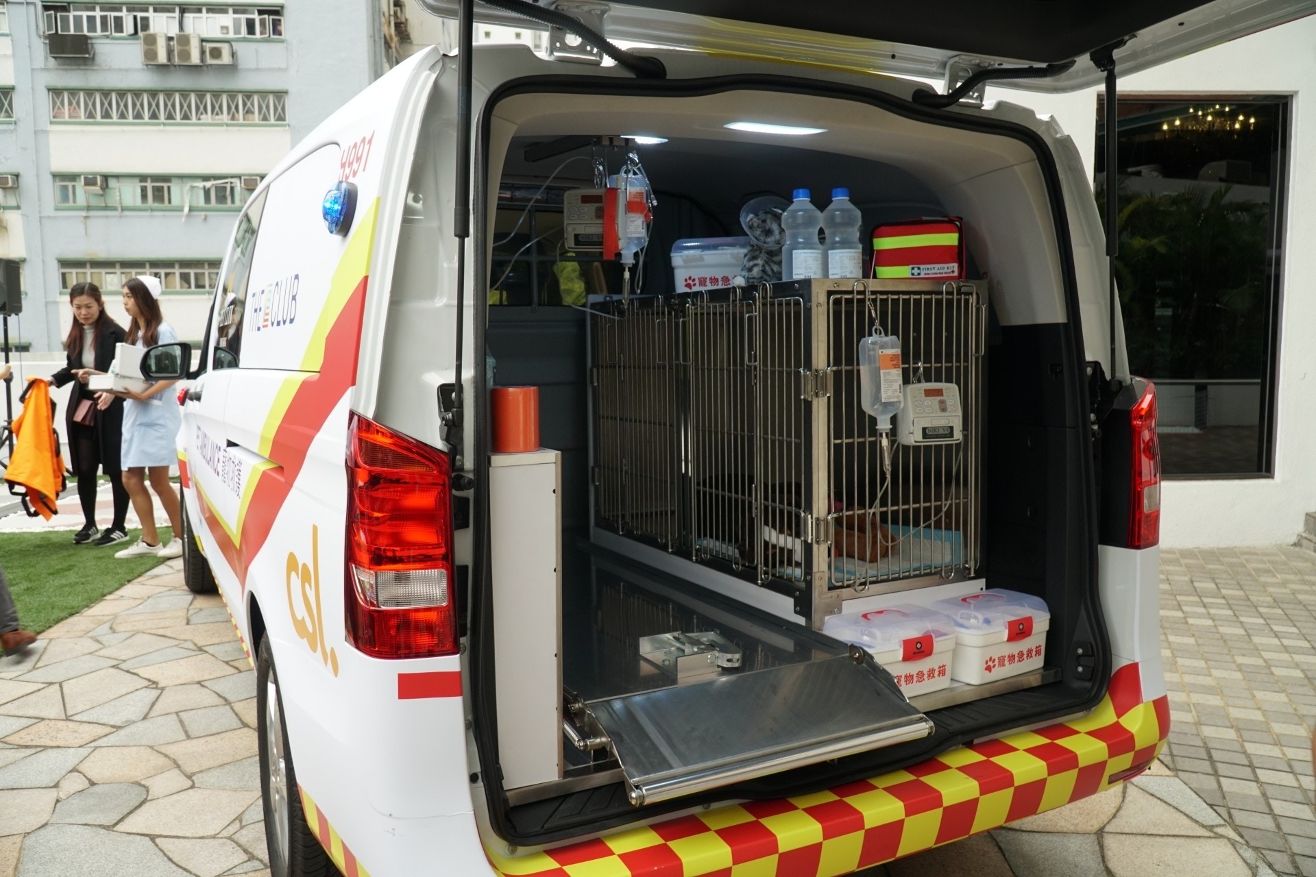 車內有寵物專用擔架等設備,而每位隨行救護員亦必須通過聖約翰救傷隊的寵物急救課程。(香港寵物會)