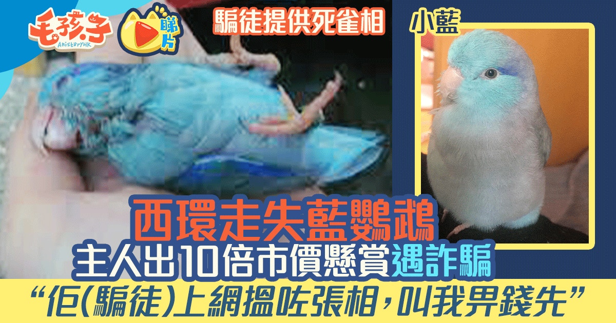 原文連結在此: https://www.hk01.com/寵物/299259/藍鸚鵡西環走失-主人重酬1萬元懸賞-騙徒用死雀相魚目混珠