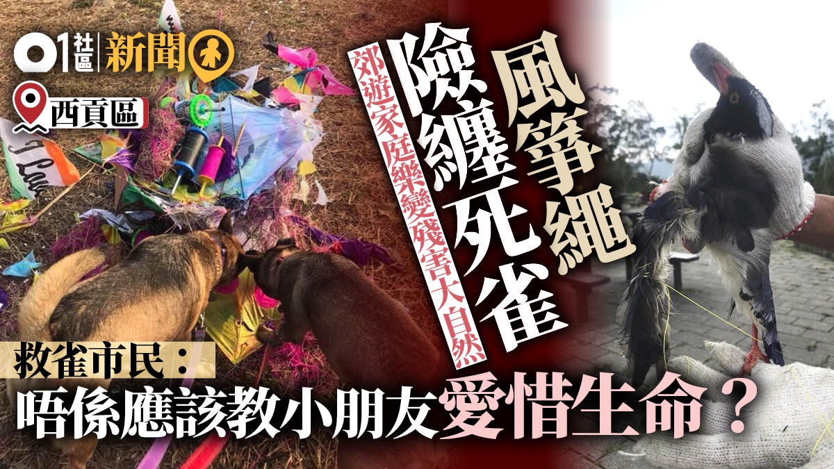 原文連結在此 : https://www.hk01.com/18區新聞/320765/殘害郊野-風箏繩纏翼險殺雀-港父母帶子女郊遊被斥欠公德