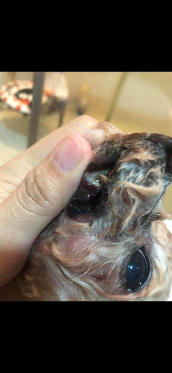 根據網友許小姐在帖文中形容,兩隻狗狗當時身體虛弱之餘,身型亦偏向瘦削,其中一隻狗狗Dong Dong精神不太好,只見牠常縮在一角睡覺,更發現在牠睡覺的地方沾上一些從狗狗的口腔內流出來的白色膿液。原來狗狗口腔內全是爛牙,不斷有膿和血水滲出,Dong Dong亦因口腔潰爛導致食慾不振。許小姐試圖強行把藥和食物餵到牠的喉嚨,但一邊餵,口腔不斷有血水滲出,而且狗狗亦痛到不能把口合起來,情況叫人慘不忍睹。
