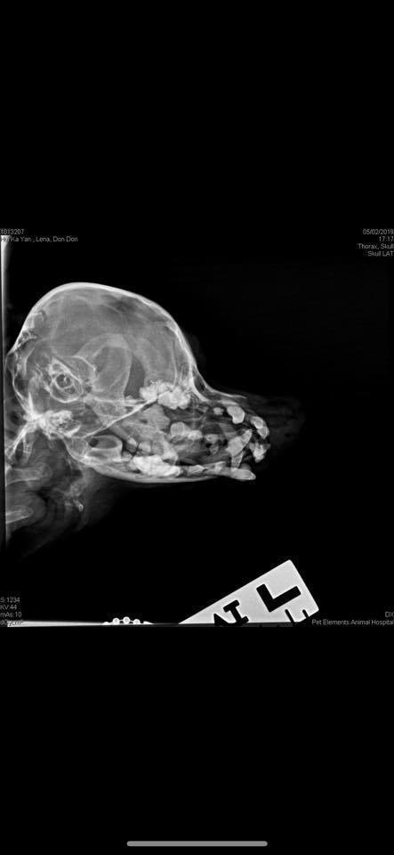 至於King King ,牠的情況就較為好一些,雖然同樣口內有血水,全都是爛牙,但至少牠精神狀態較好,而且亦有食慾,但不幸的是,經檢查後發現King King有輕微腎石的問題。