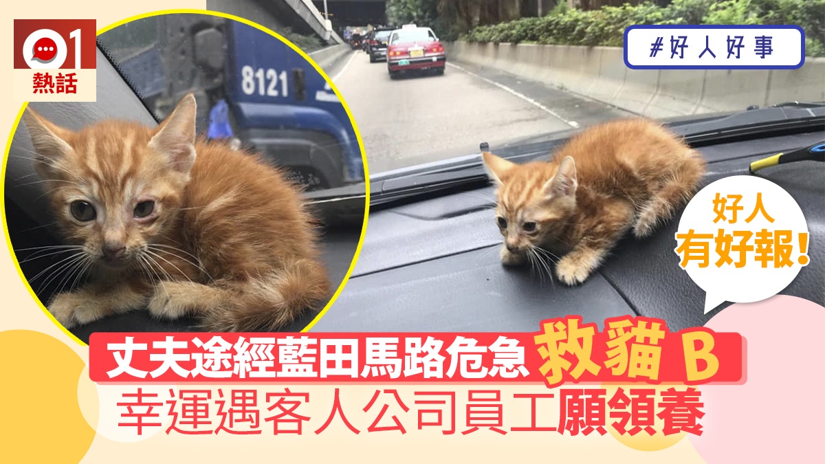 不少小動物因為意外而無辜失去性命,網民最近於facebook群組撰文分享自己與丈夫拯救貓B的經歷,她表示昨日丈夫駕車途經藍田觀塘道,突然遇見一貓B衝出馬路,碰巧有輛泥頭車正向該位置駛去,丈夫危急之際即截停司機,並成功拯救可憐的貓B。樓主又指後來公司有同事願意領養成為新主人,網民大讚是好人好事,更發揮創意為貓B改名,「一於叫泥明啦」。