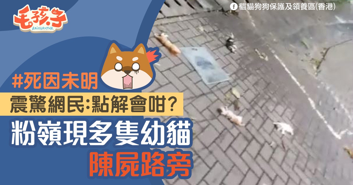 有網民今日(6月5日)在Facebook群組「貓貓狗狗保護及領養區(香港)」上載了一段影片,片中有四隻幼貓伏屍於粉嶺流水響路邊,目前未知幼貓死因。