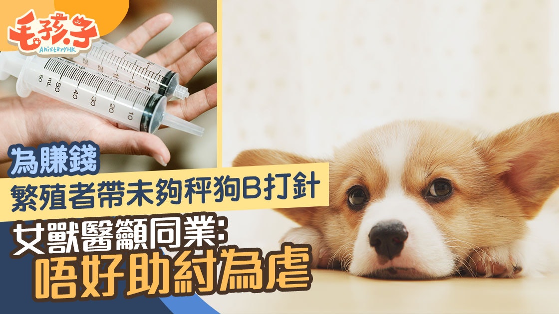 港府於2017年曾修訂出售狗隻相關法例,但仍有眾多商人為牟暴利而不惜違規。一位獸醫在網上抒發心聲,指責有繁殖者帶未足歲數的幼犬來注射疫苗,目的是為了盡快將幼犬推出市場出售,雖然她指過早注射疫苗,不會直接對幼犬造成傷害,但她同時呼籲同行憑良心做事。