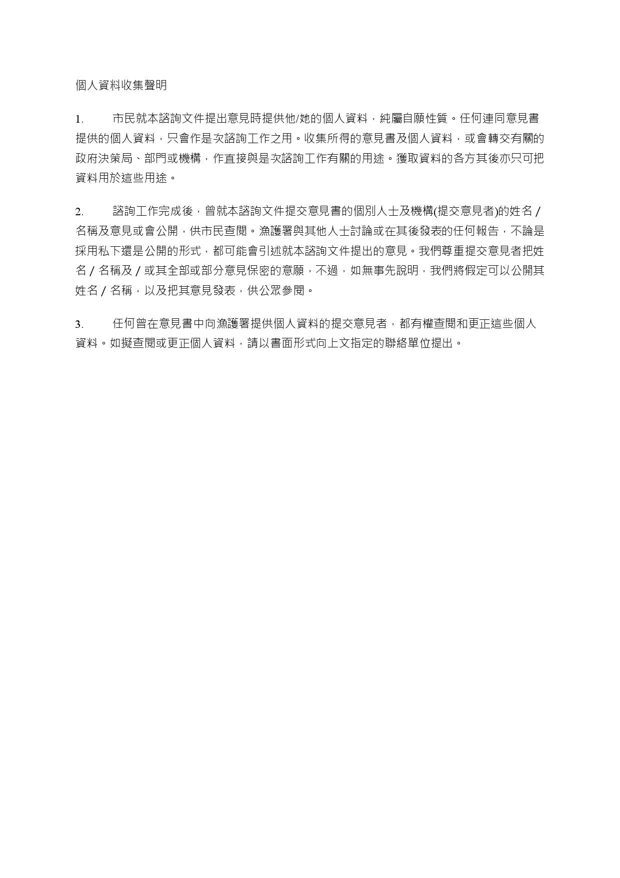 市民亦可經網絡下載意見表格,透過書面方式遞交意見,書面意見須於7月31日或之前以郵遞(地址:香港九龍長沙灣道303號長沙灣政府合署5樓漁農自然護理署動物管理(發展)科)、傳真(號碼:3110 1336)或電郵(電郵地址)方式提交。