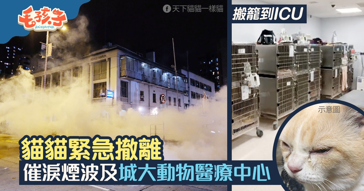 有前線員工爆料指,位於深水埗的城大動物醫療中心亦遭牽連,多隻住院中的動物因受催淚煙影響,需要緊急撤離,事件中暫未有動物傷亡。不過,中心回應指所有住院寵物沒受影響。