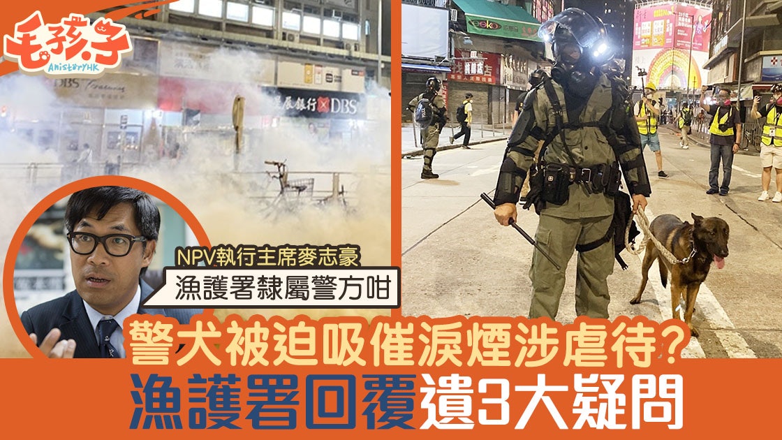 警方近日多次帶沒有防毒面具等裝備的警犬到示威現場執勤,期間被迫吸入催淚氣體。日前有動保團體作出聯署聲明,指警方疑違反香港法例第169章《防止殘酷對待動物條例》,使警犬受到不必要痛苦。《香港01》早前向漁護署提出4大查詢,內容包括(一)有否與警方溝通、(二)警方是否虐待動物、(三)署方會否作檢控、(四)有否接獲相關投訴。