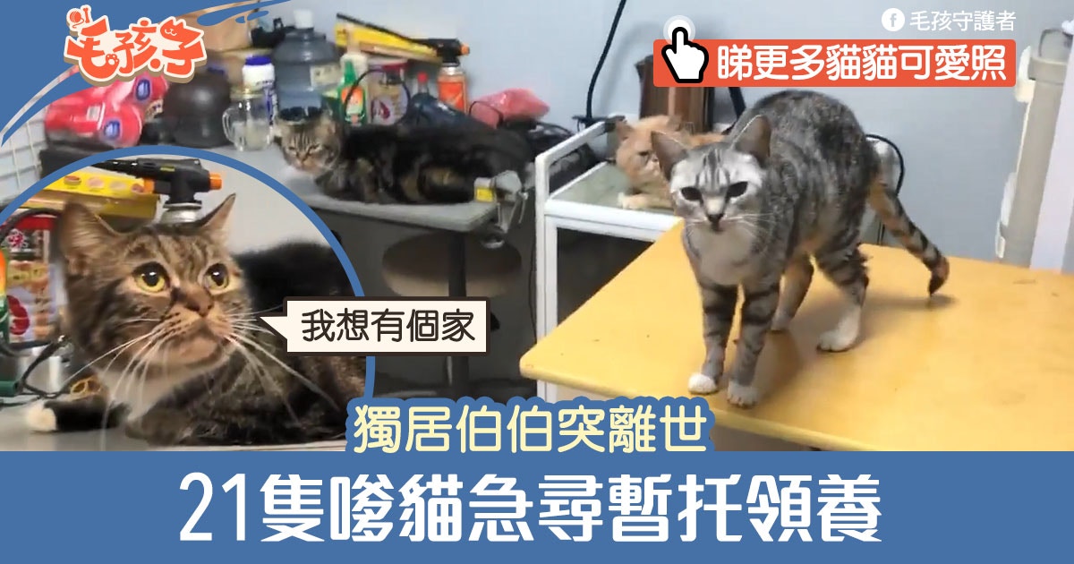 昨日(9月7日),動保機構「毛孩守護者」接到市民求助,指有位獨居伯伯突然離世,屋內21隻貓咪頓成孤兒,需急尋暫托者或領養者。